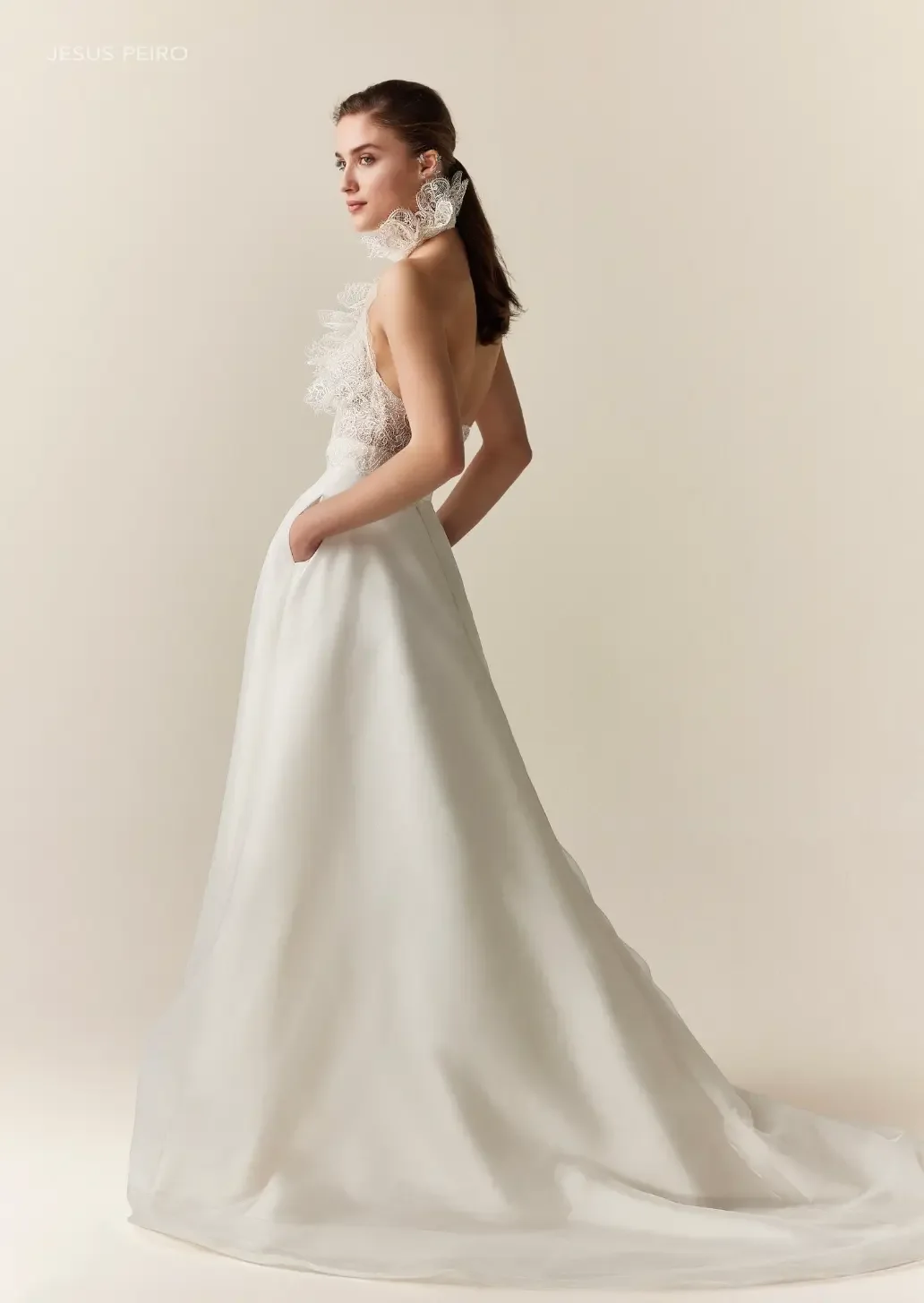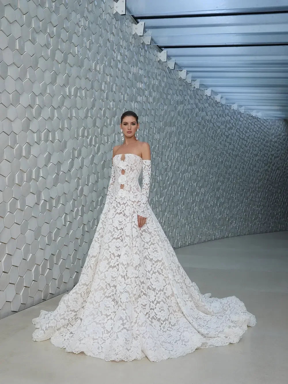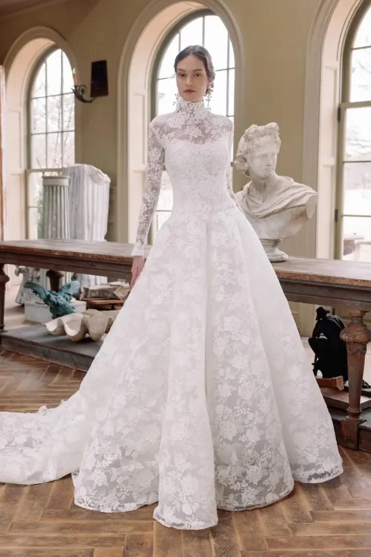 Les motifs modernes – des détails botaniques délicats aux superpositions élégantes – font de la dentelle cette saison un choix intemporel pour les mariées à la recherche d’un look à la fois rêveur et éthéré en mélangeant charme classique et contemporain.