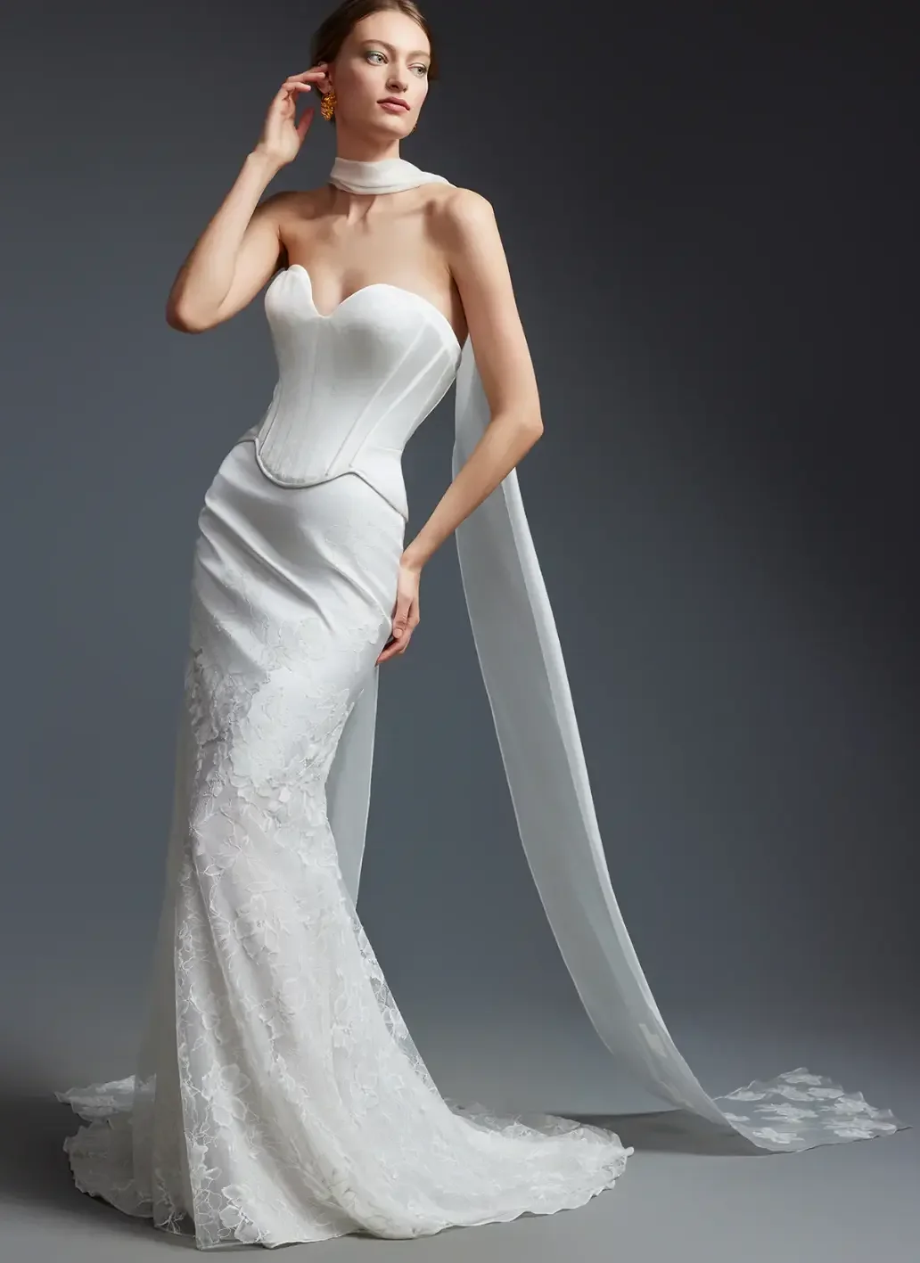 Les tendances des robes de mariées en 2025/2026 sont marqués par l’élégance et le romantisme d’hier avec de fines dentelles et des motifs floraux incorporés aux modernisme d’aujourd’hui manifesté par des corsets structurés et des tenues de deux pièces.